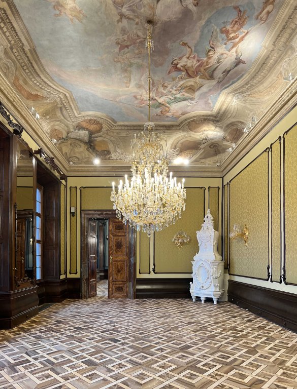 The exterior sculptural decoration and the main staircase were created by Matyáš Bernard Braun and his workshop. At the time of Jan Václav’s unexpected death in 1719, the rough construction was completed. The palace was finished by his heirs. In the 1720s, Filip Josef Gallas (1703–1757) completed the decoration of the main staircase and several representative halls and salons, painted by the renowned artist Carlo Innocenz Carlone. During the Prussian siege and occupation of Prague in 1744, the palace was completely looted.